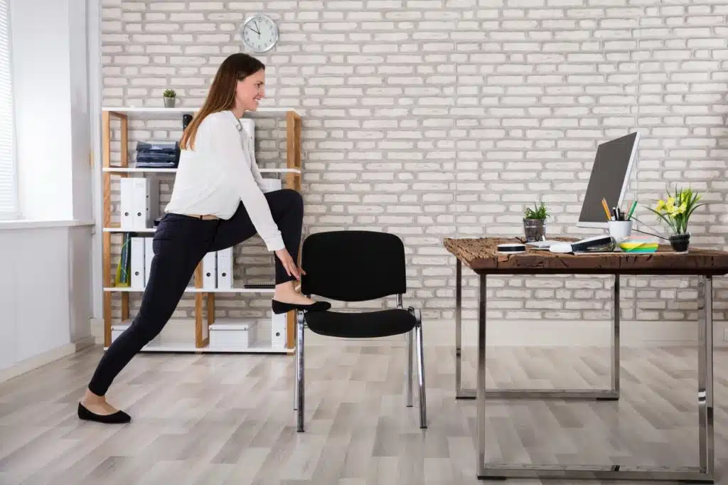 Pour muscler ses jambes en étant assis, vous pouvez tendre une jambe sous votre bureau et la maintenir en l’air quelques secondes. Une fois terminé, passez à la deuxième. En utilisant son propre poids, votre jambe va naturellement se muscler.