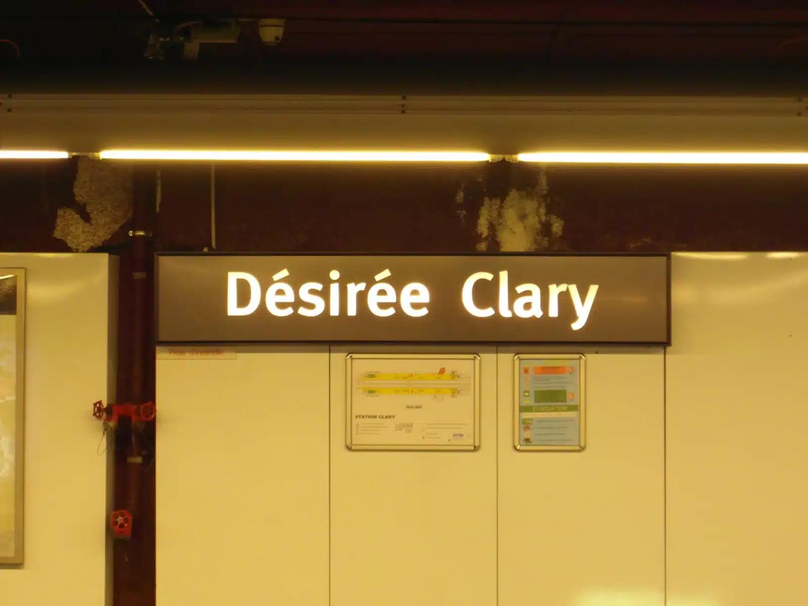 Située sur la ligne 2 du métro phocéen, la station Désirée Clary se trouve sous le croisement de la rue Clary et celle de Ruffi. Elle dessert principalement le quartier de La Vilette au sud du 3e arrondissement. La station ouvre le 14 février 1987. Sa décoration principale tiens dans un panneau de Patrick Ventujol. celui-ci représente la famille royale de Suède en l’honneur de la reine de Suède née à Marseille en 1777.